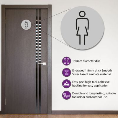 Ladies Toilet Door Symbol 150mm Silver