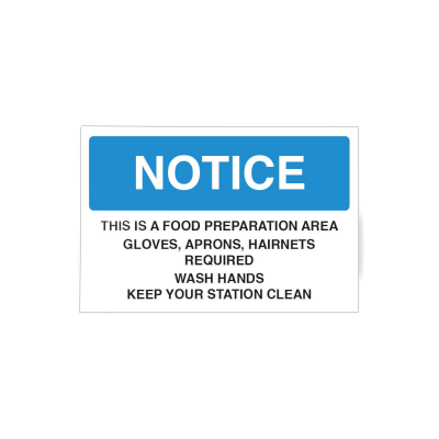 Notice Food Preparation Area – Staff Food Hygiene Notice Cs209_Cs210