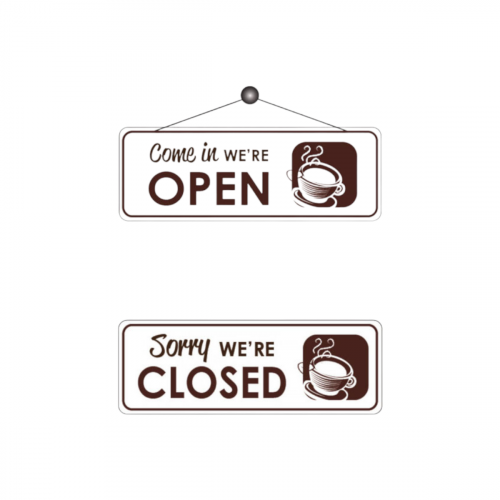 Cafe Open Closed Notice 300x105mm White Fd166