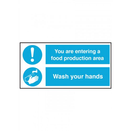 - Place this sign outside of the kitchen or food production area to remind staff to wash their hands on entering as this is a food production area and hands must be washed to prevent cross-contamination