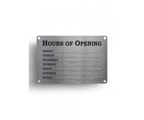 - Be sure to let your customers know your opening and closing times by just a glance at this sign.